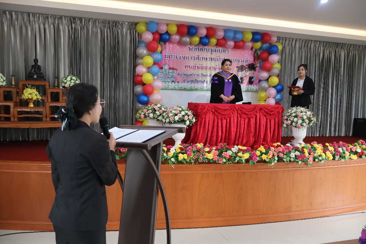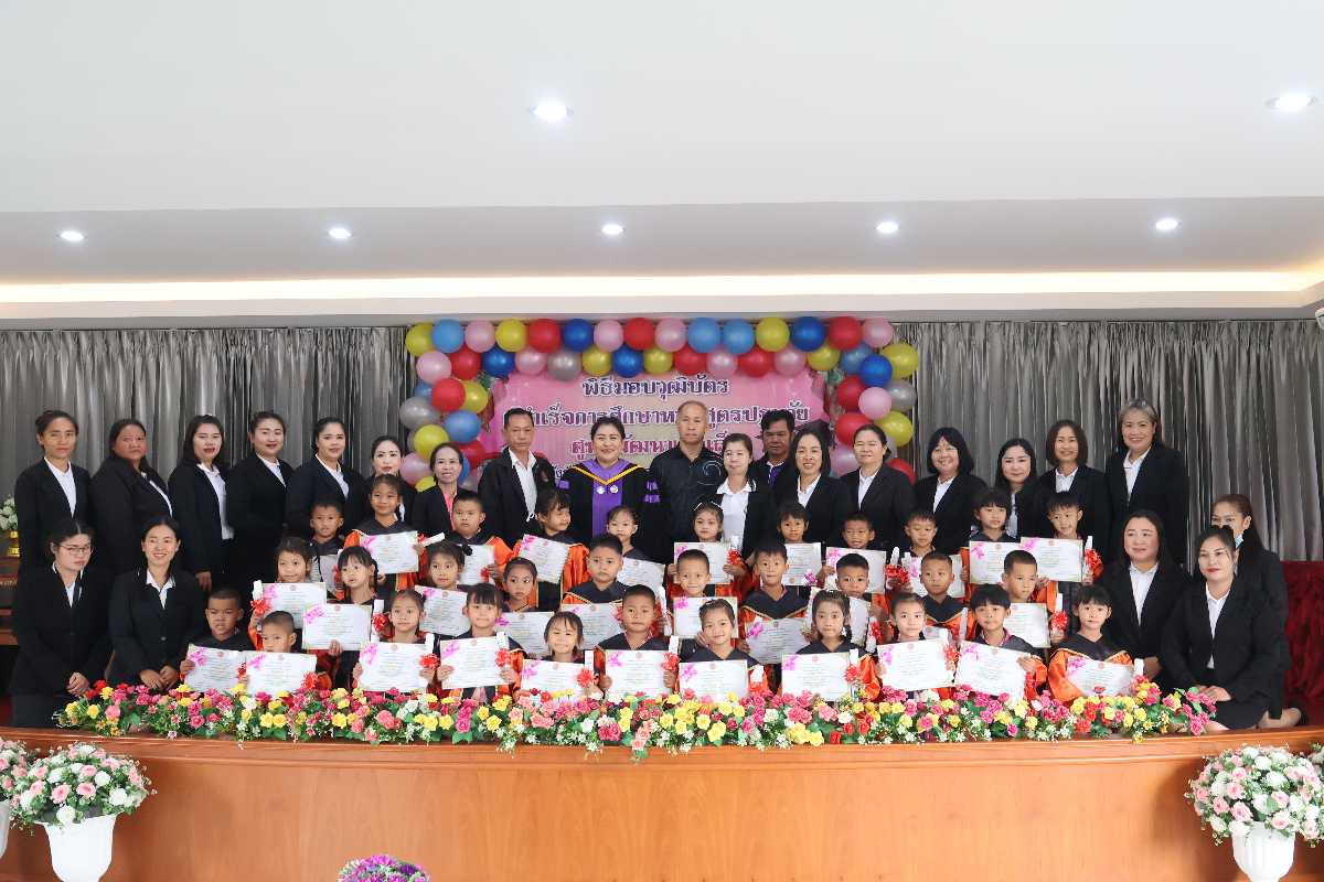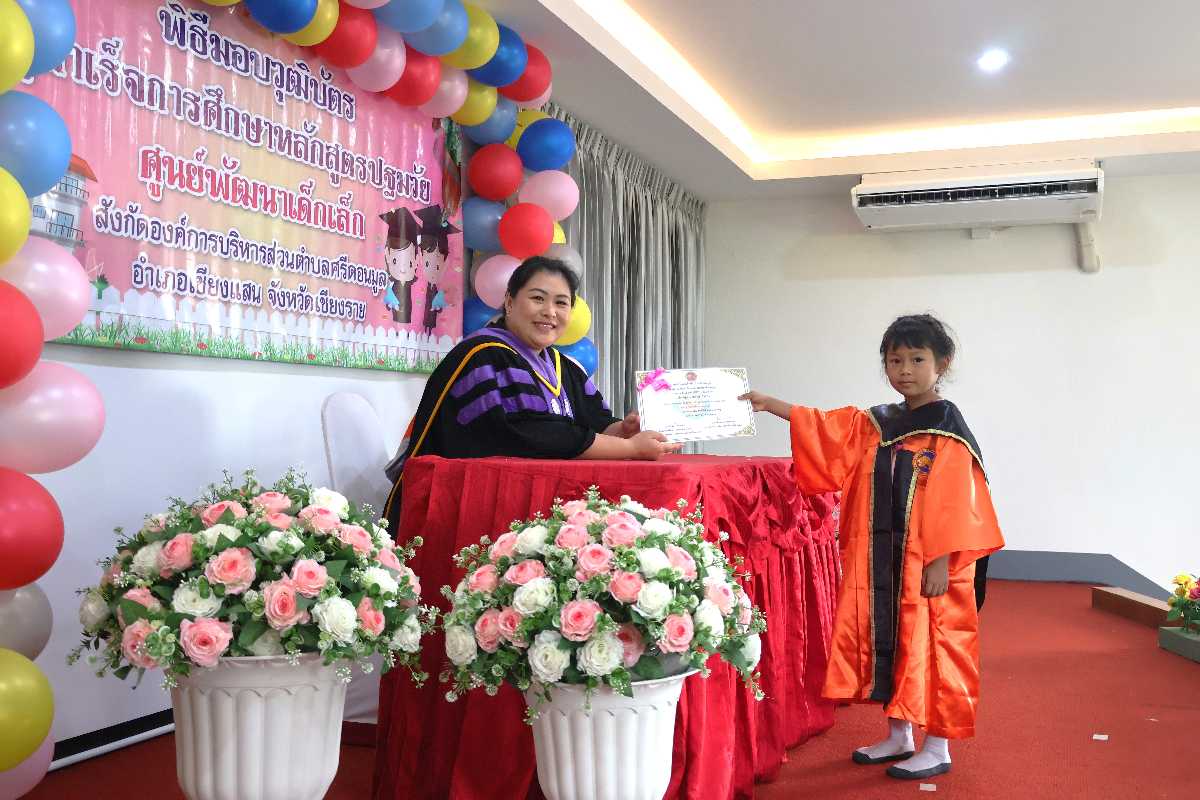 พิธีมอบวุฒิบัตร ผู้สำเร็จการศึกษาหลักสูตรปฐมวัย ศูนย์พัฒนาเด็กเล็ก (สังกัดองค์การบริหารส่วนตำบลศรีดอนมูล)